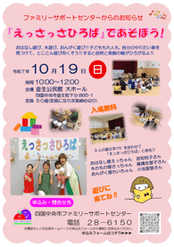 四国中央市ファミリーサポートセンター 電話:0896-28-6150 FAX:0896-56-5447 |